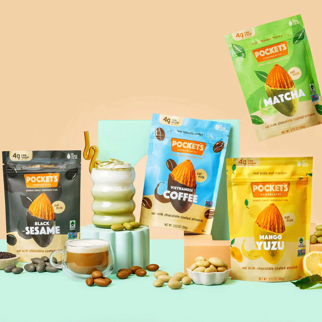 Pocket Chocolates’ Choco Nuts are one of our BEST SELLERS in the shop! Try all four: Black Sesame, Vietnamese Coffee, Matcha and Mango Yuzu!