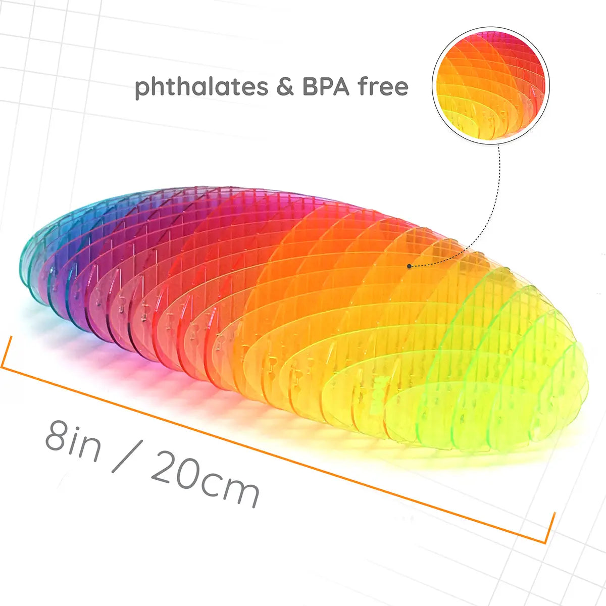 - Visually Soothing – shifting rainbow colors respond to movement